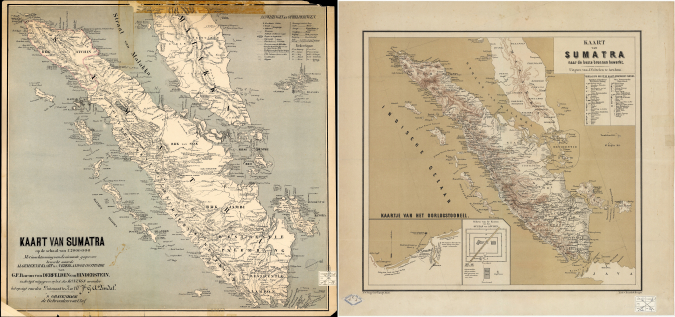 In de KNAG-collectie bevinden zich twee kaarten van Sumatra uit 1873. Hoewel ze in hetzelfde jaar verschenen, verschillen ze totaal van inhoud. Wat is het verhaal erachter?