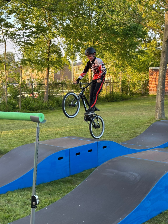 Met zijn buren bouwde hij een pumptrackbaan – zo’n golvend geval waar je met een klein fietsje overheen kunt rijden zonder te trappen. De samenwerking met zijn buren bestond al, omdat ze doorgaans ook samen bouwen aan een wagen voor de feestweek. Tijdens de Bloeiweek kunnen alle kinderen van de basisschool in het dorp onder schooltijd BMX’en. ’s Avonds is de baan open voor wie wil. Er heerst een uitgelaten sfeer. Ouders hadden nooit verwacht dat hun kinderen dit durfden. De meesten kennen de sport niet. Voor volwassenen die zich (vaak minder soepel dan de kinderen) op de pumtrackbaan wagen, klinkt een aanmoedigend applaus. Ook de buren van de organisator zijn van de partij om te helpen met fietsjes uitdelen en helmen opzetten. ‘Dit zouden we vaker moeten doen’, zeggen mensen tegen elkaar. Zou er animo zijn voor een vaste BMX-installatie in deze regio van Friesland?