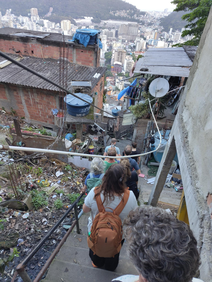 Wow – het ene moment ben je in de favela, het andere op een dakterras in een rijke wijk. Hier wordt het besef opnieuw duidelijk dat we echt in een semiperifere regio zijn. Indrukwekkend!