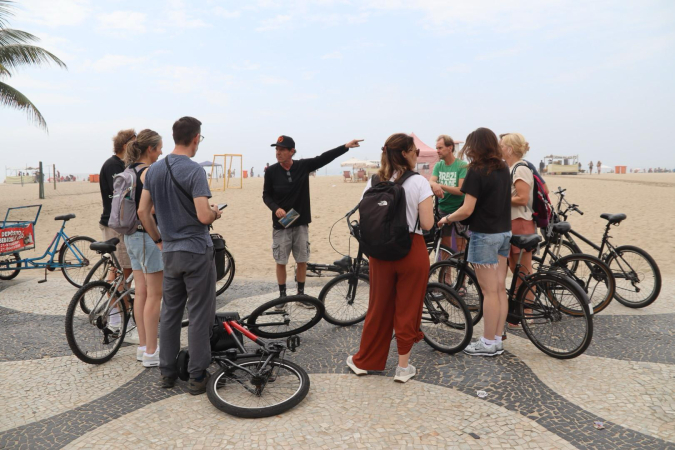 Onze tijd in Brazilië wordt zo strak mogelijk gepland. De eerste ochtend (dag 2 van de reis) fietsen we door de verschillende wijken van de stad. Er zijn opvallend veel fietspaden aangelegd en onze gidsen weten het verhaal van de stad goed over te brengen. We fietsen langs de stranden, de bekende trappen van Selarón, zien het Christusbeeld, de Suikerbroodberg, het historische centrum, de wijken Botafogo en Fluminense en het zakencentrum. Op de stranden wordt volop gesport, en wij maken een lunchstop met empanada’s in het historische centrum. Verder maken we ook direct kennis met de hoge zonnestand hier. Dat levert meteen al een paar roodverbrande gezichten op.