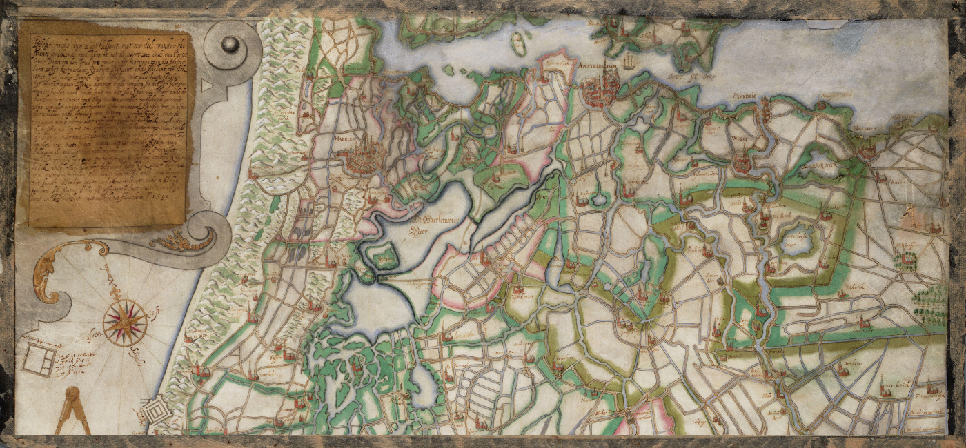 Al op een kaart van 1591 is te zien dat het Spieringermeer, het Oude-Haarlemmermeer en het Leidse Meer nauwelijks van elkaar gescheiden zijn en hun omgeving regelmatig bedreigden (figuur 1). De kaart was in feite een noodkreet. De ridder van Heemstede had deze besteld om het Bestuur van het Hoogheemraadschap Rijnland te overtuigen dat maatregelen nodig waren. Zijn kasteel kwam steeds dichter bij het water te liggen.