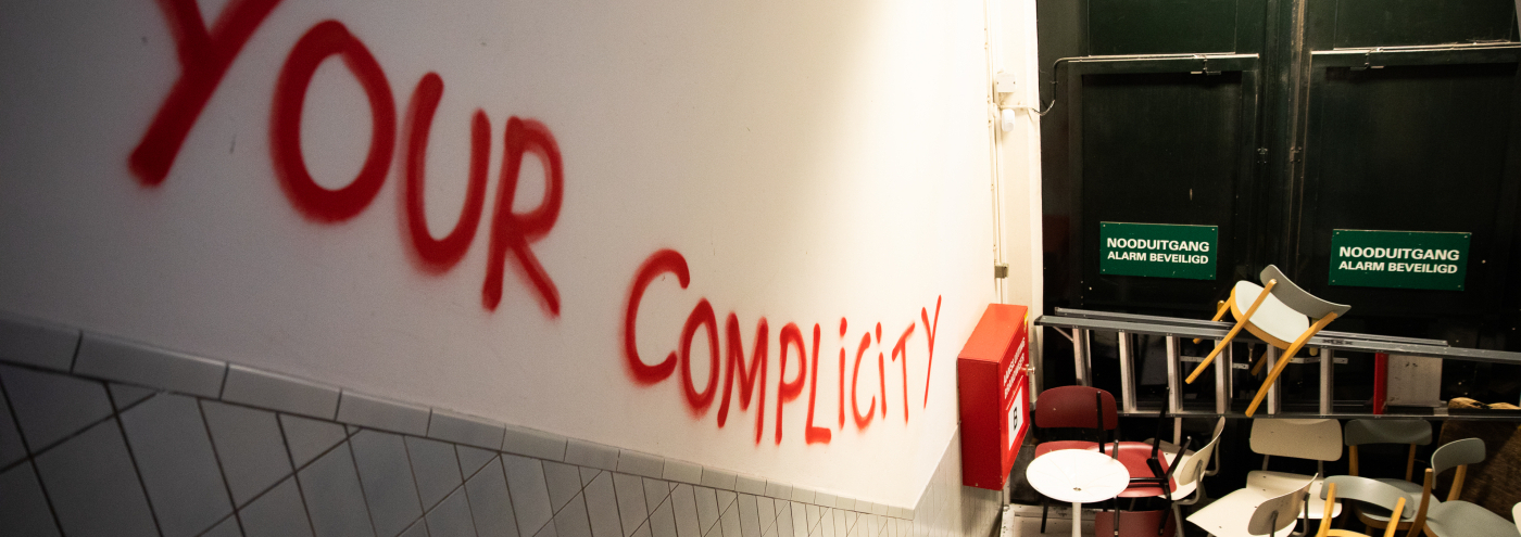 In april vorig jaar bezetten studenten en medestanders het Maagdenhuis van de Universiteit van Amsterdam uit onvrede over de samenwerking met Israëlische universiteiten. Foto’s van de leuzen die zij op de muren van het Maagdenhuis schreven (‘Break the Ties’, ‘Your Complicity’) verschenen in Het Parool. Daarmee hielpen de media de actievoerders hun boodschap ook buiten het Maagdenhuis te verspreiden.
