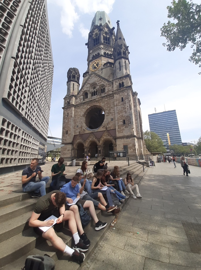 Theo Peenstra, lerarenopleider aardrijkskunde Windesheim Zwolle, heeft enkele veldwerkopdrachten ingezet bij een excursie naar Berlijn. De studenten kregen in de trein een boekje met een harde kaft, waarin zij de hele week tekeningen en notities maakten. Drie à vier keer per dag zetten de lerarenopleiders een opdrachtje in de WhatsApp-groep. Dat begon al in de trein met de opdracht een tekening van het Duitse landschap te maken. Een aantal opdrachten ontstond spontaan. Zo werd de groep na een bezoek aan een Libanees restaurant in de wijk Kreuzberg gevraagd: wat heb je gegeten dat je nog niet eerder hebt gehad? En zou je dat in Nederland ook eten? Door dit soort ervaringen en reflectie daarop ‘ben je heel erg in die stad’, aldus Theo. Niet alleen studenten maar ook de docenten gingen op een andere manier naar de stad kijken, ‘doordat je je bewuster bent van geuren, kleuren en geluiden’. Voor Windesheim is deze manier van werken een mooie eerste stap naar bewustwording. ‘Het is een manier van waarnemen die we vaker willen laten terugkomen in excursies.’