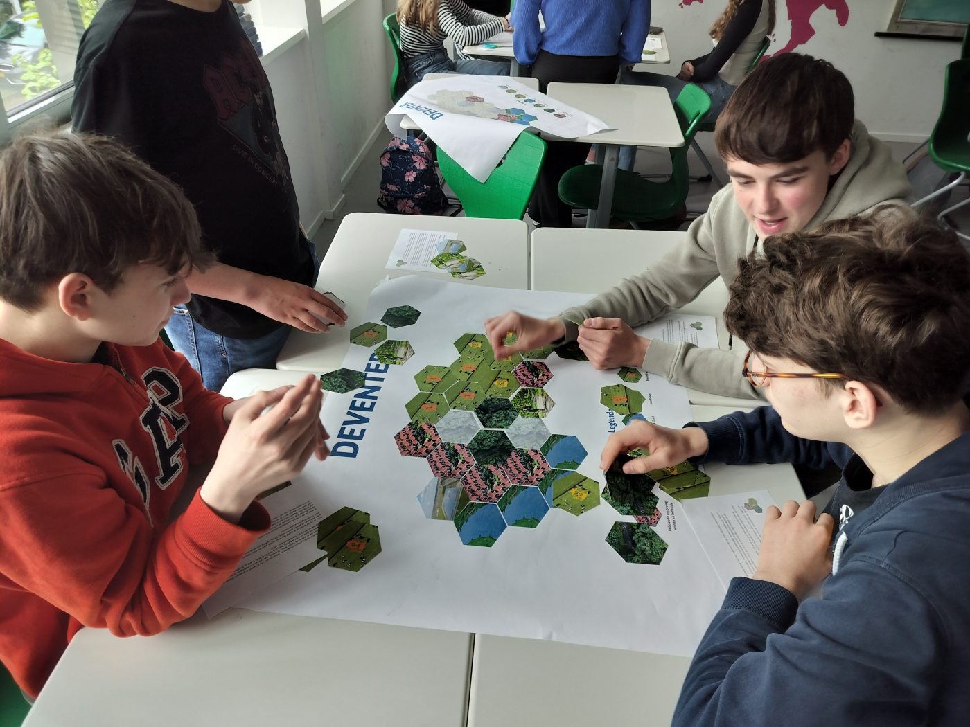 Het Kadaster is al jaren een gewaardeerde deelnemer van de GeoWeek. Zo kwamen ze in mei 2023 op bezoek bij mijn school in Deventer met een spel dat veel weg heeft van Kolonisten van Catan. Althans, de zeshoekige schijfjes doen dat. Want verder komt er geen dobbelsteen, pion of wegstukje aan te pas. Nee, het is een discussiespel waarbij het wensenpakket van de deelnemers groter is dan de gemeente aan vakjes biedt. Compromissen maken is dus de boodschap. Het Kadaster heeft deze spelvorm uitgebreid en hield er op de Onderwijsdag 2025 zelfs een workshop over. Dit is nu als lesmateriaal te downloaden op onze website. Met een beetje fantasie is het spel vrij eenvoudig aan te passen aan de eigen gemeentesituatie. Dus voor elke docent die moet stoeien met landinrichting, is de speelse oplossing nabij.