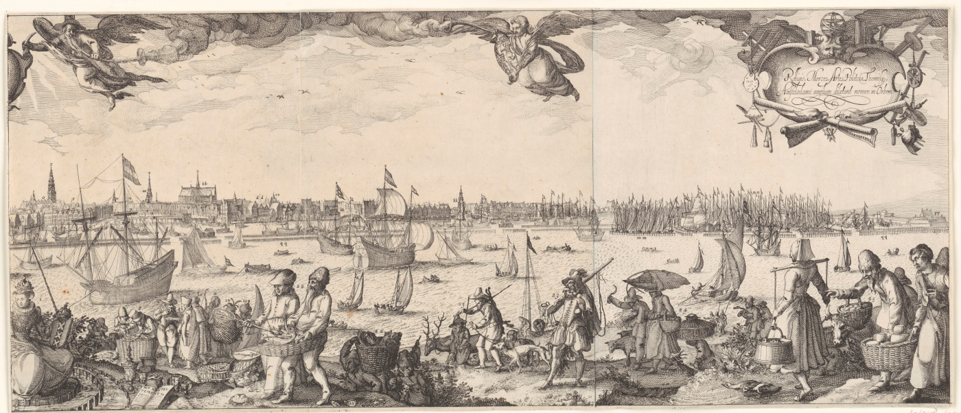 Profiel van Amsterdam, gezien vanaf het IJ. Gemaakt door prentmaker: Claes Jansz. Visscher in 1611.
