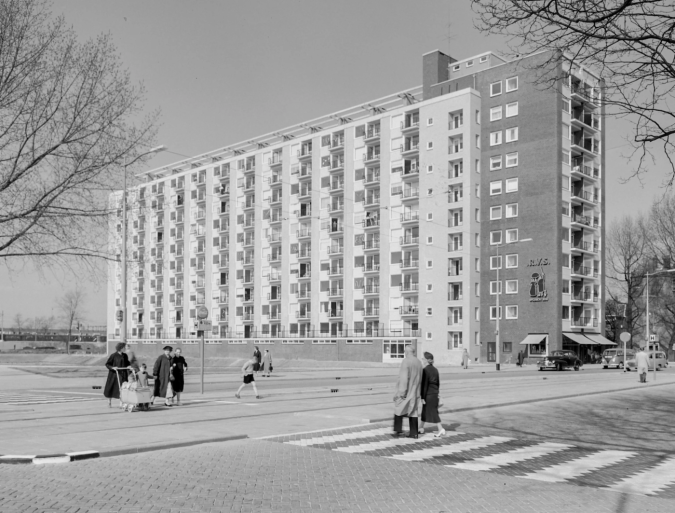 De RVS-flat voor alleenstaande vrouwen is een van de vijftig gebouwen besproken in Gebouwen door Vrouwen, R’dam. Foto genomen in 1958.