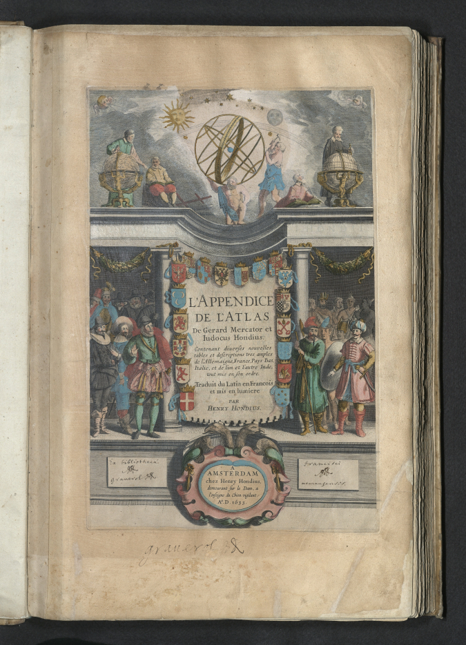 Pas op de titelpagina van de uitgave 1633 van Mercators Atlas door Henricus Hondius staat een Atlas-figuur die de hemel draagt, in dit geval een armillaire sfeer, die een stuk lichter is dan de hemelbol. Hij ondersteunt de sfeer dan ook maar met één hand (figuur 7).