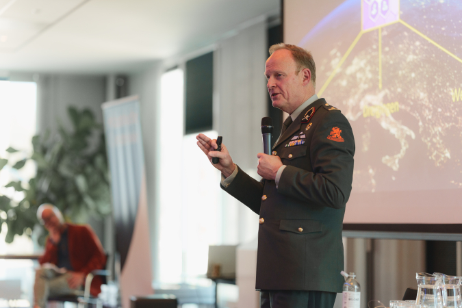 Daarna nam brigadegeneraal Han Bouwmeester het woord. In een helder, maar weinig hoopvol betoog beschreef de hoogleraar krijgswetenschappen de huidige staat van conflicten wereldwijd. Hij verwees naar de maar liefst 88 lopende gewapende conflicten en stond onder meer stil bij situaties in Soedan, Iran en Oekraïne. Vooral het conflict in Soedan, dat in het nieuws onderbelicht blijft, is destructief op ongekende schaal.